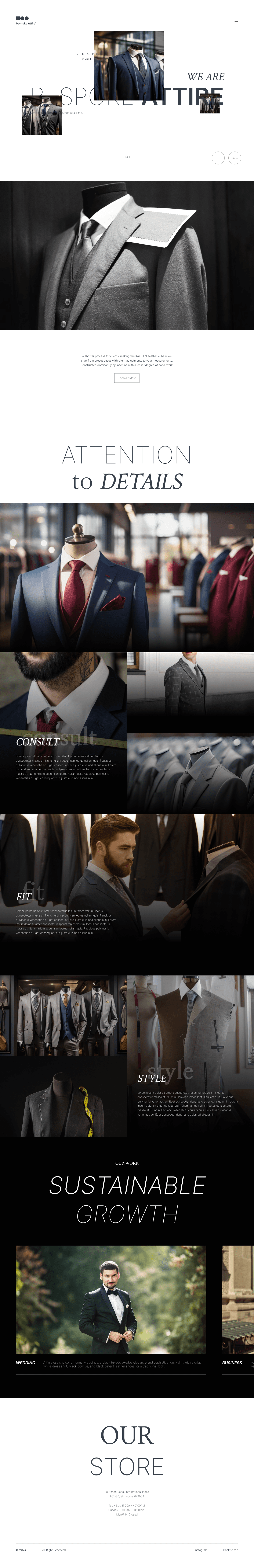 To create an immersive online experience that feels as premium and personalized as the bespoke tailoring process itself. The website needed to be modern and engaging while maintaining a classic, timeless aesthetic.
