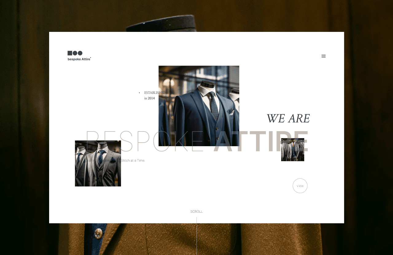 Typography: A sophisticated blend of elegant serif and clean sans-serif typefaces. This combination bridges the gap between traditional tailoring heritage and modern web design.