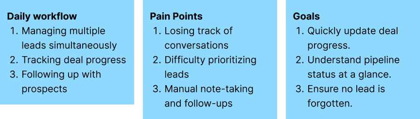Before designing Blaze CRM, we identified several challenges faced by sales teams.