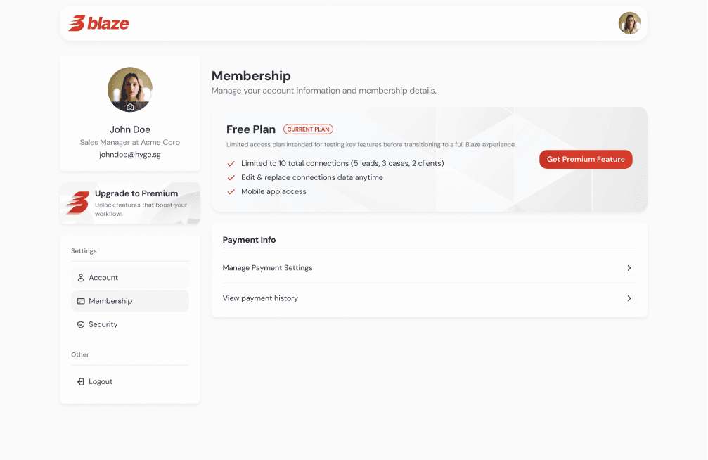 The goal of Blaze CRM was to create a simplified CRM experience that helps teams focus on closing deals rather than managing administrative tasks.