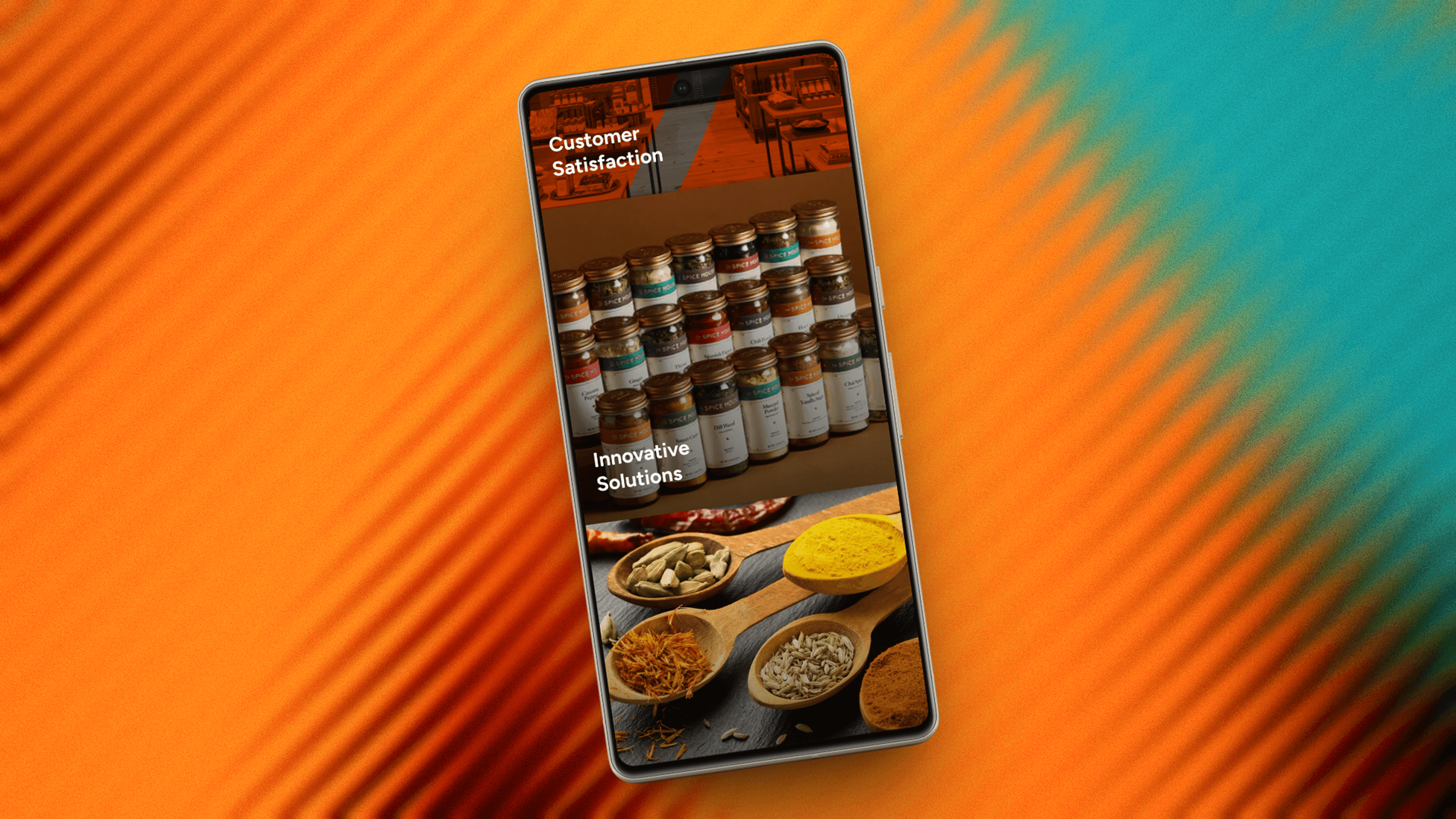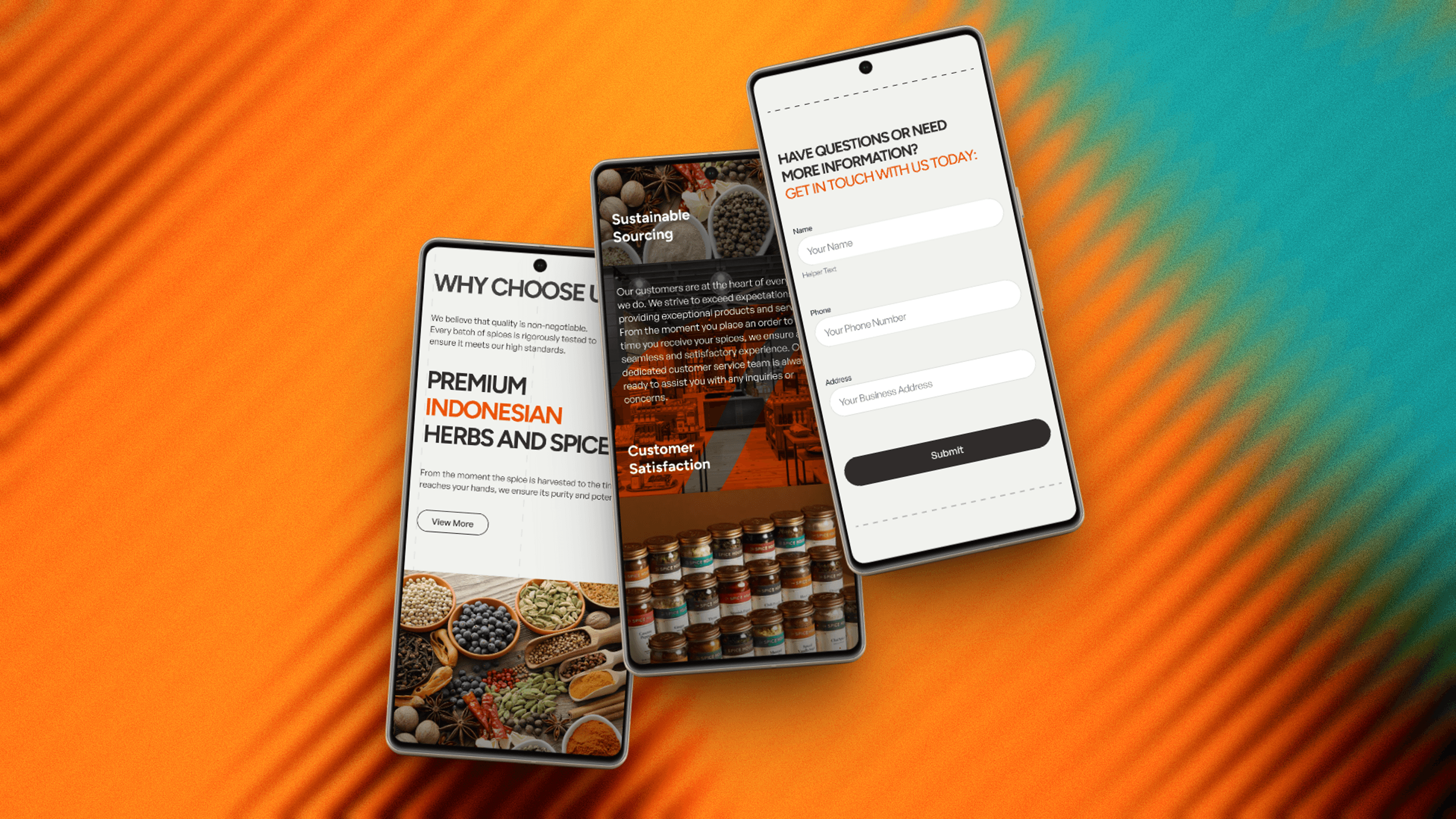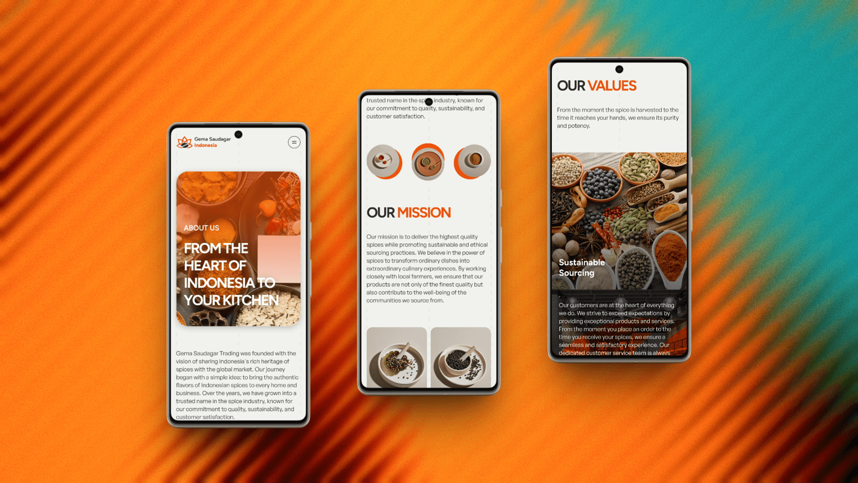 Following the desktop company profile, this post focuses on the mobile experience. With a B2B audience that increasingly browses and inquires via mobile, the responsive design needed to carry the same brand weight — bold typography, rich spice photography, and a clear inquiry pathway — all adapted for single-column, thumb-friendly scrolling.