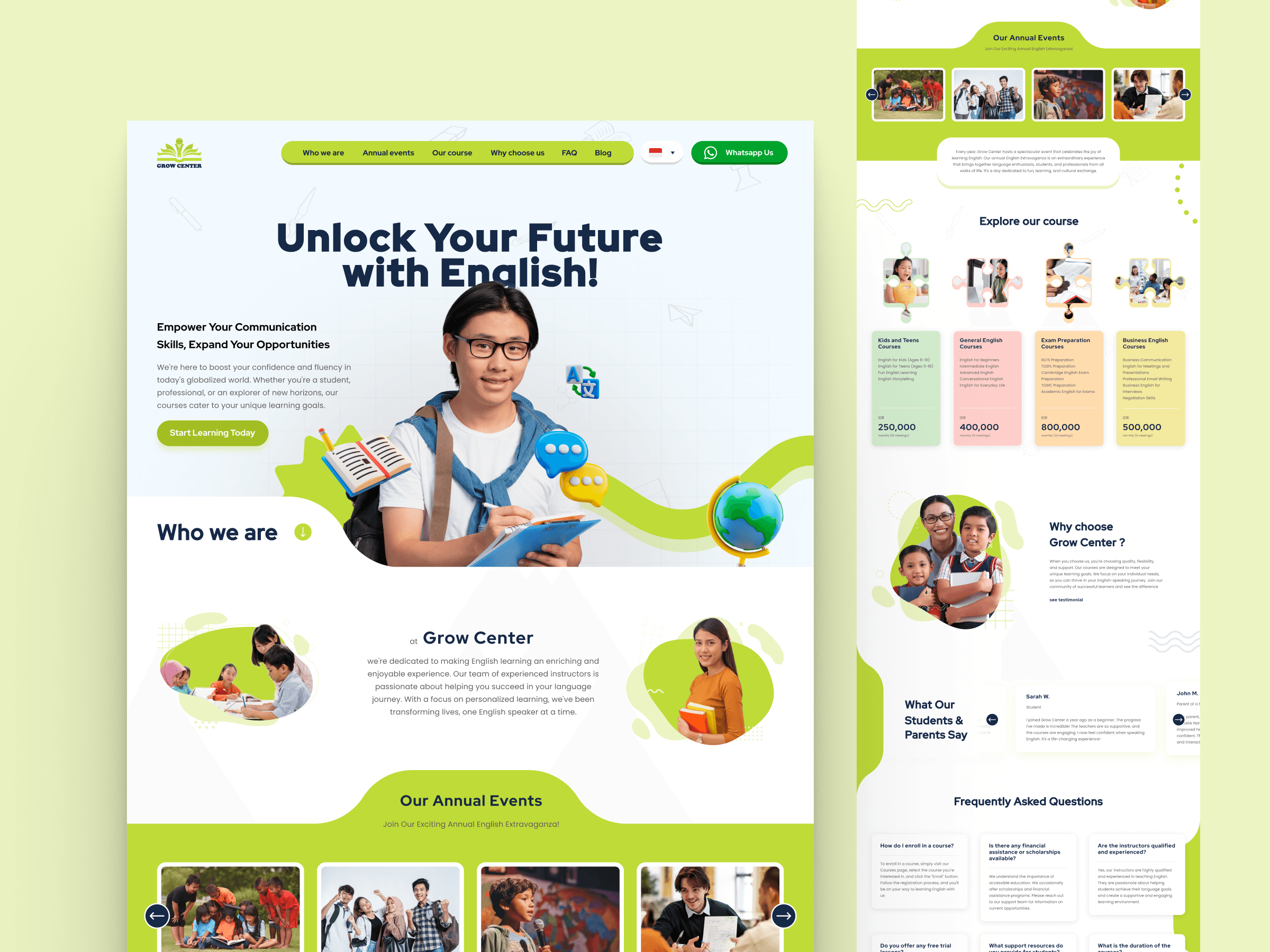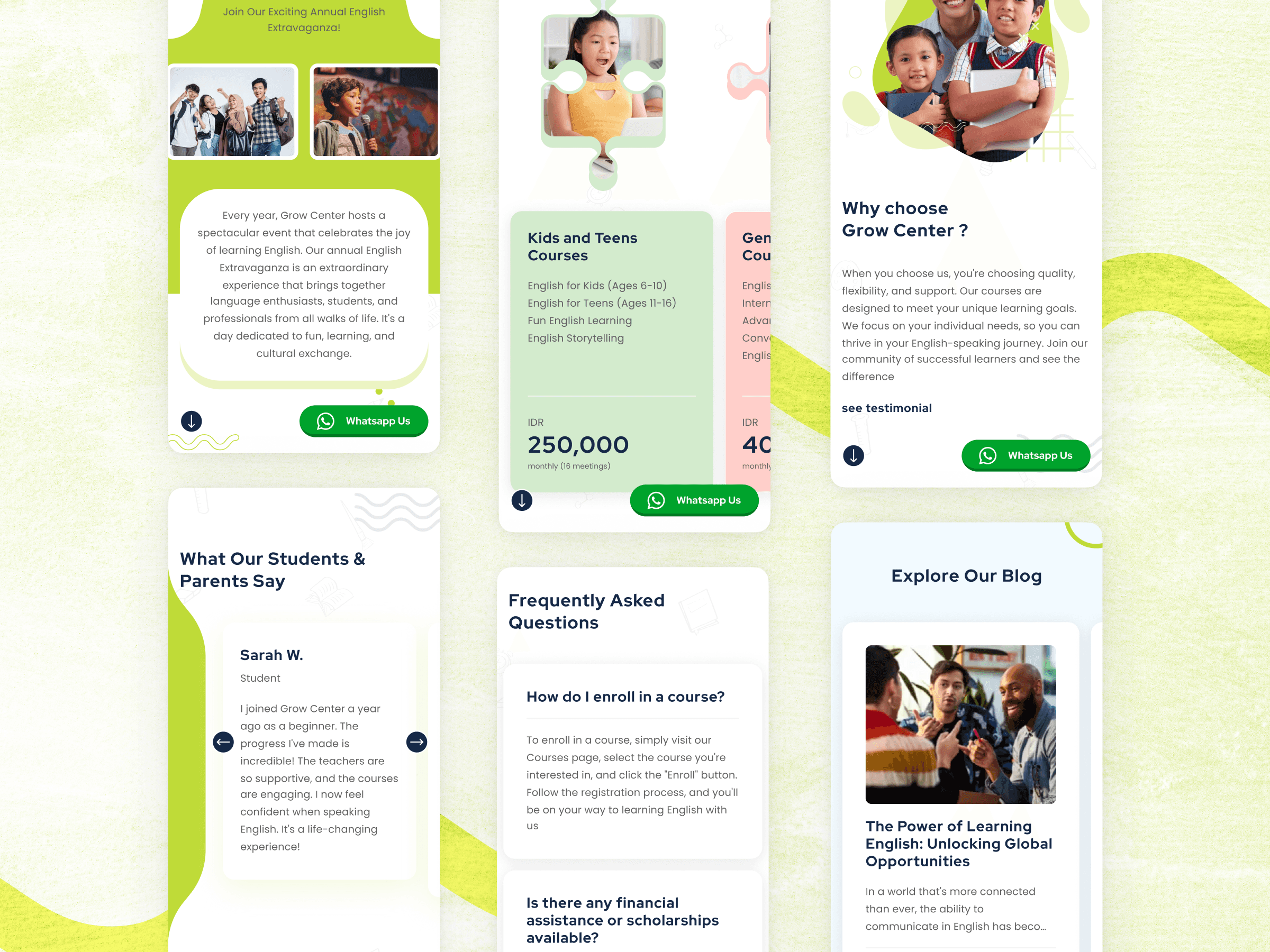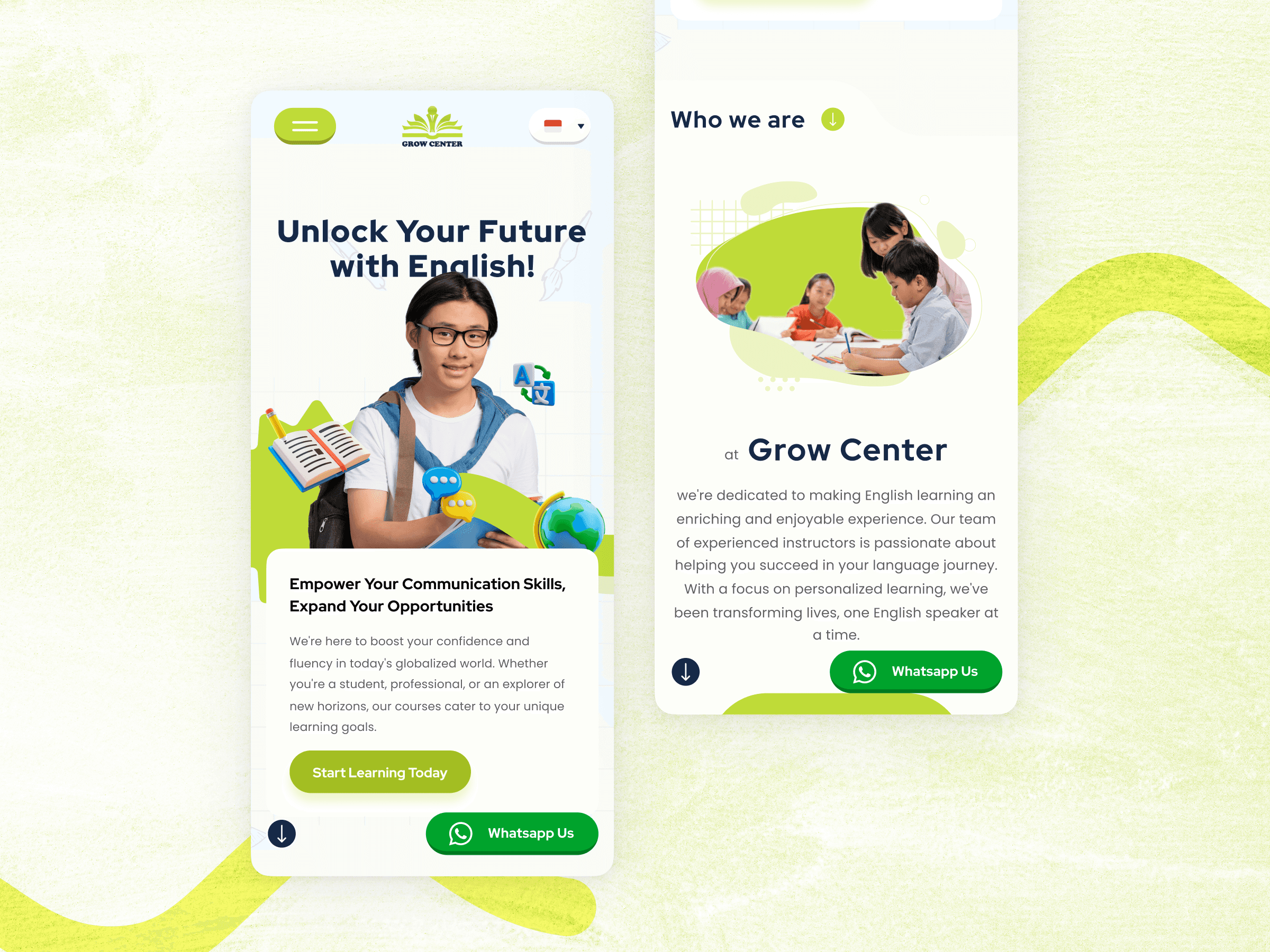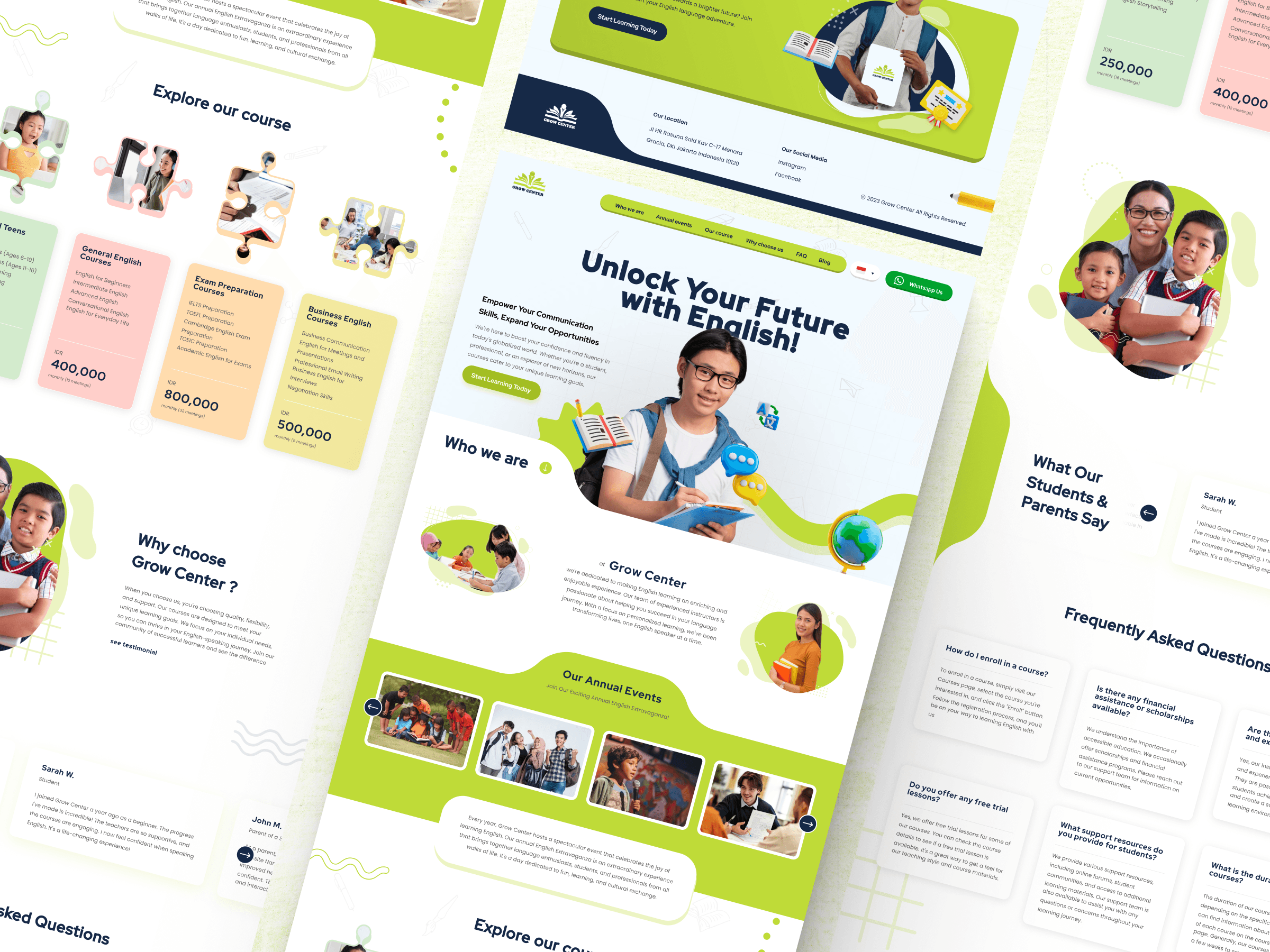 Grow Center is a dedicated English language learning institution aimed at empowering communication skills for a globalized world. For this project, the objective was to craft an engaging, vibrant, and highly accessible landing page that caters to a diverse demographic from young learners to corporate professionals.