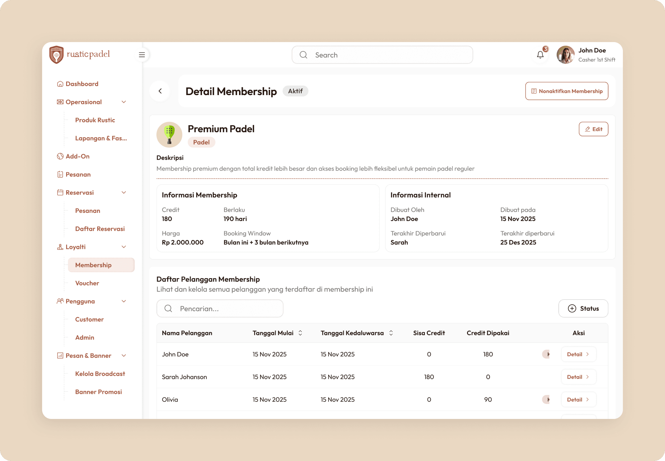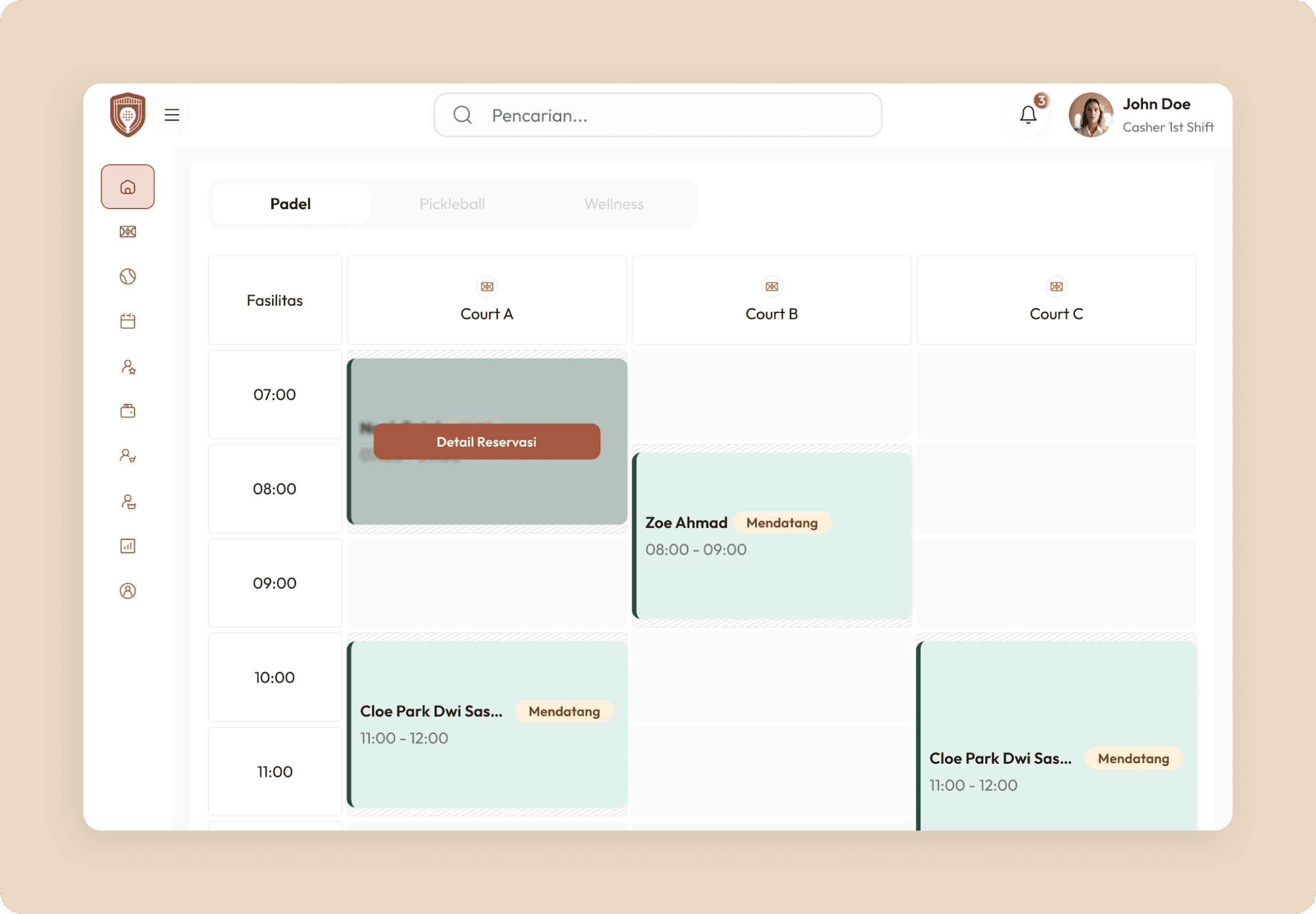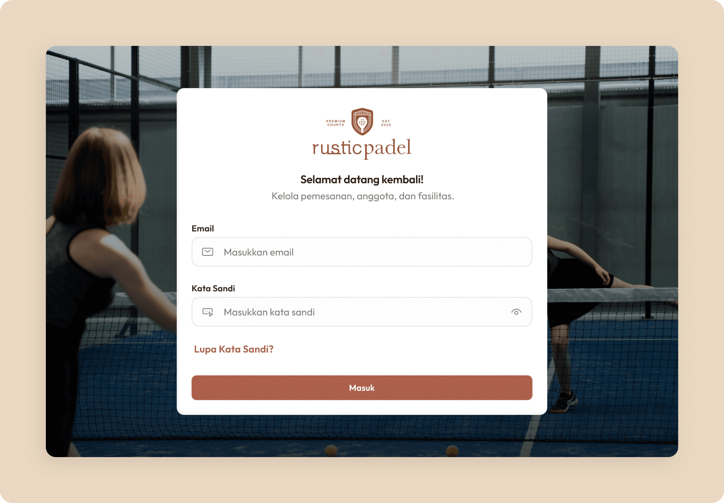 Rustic Padel is a real-time court booking platform designed to manage reservations, membership credits, pricing rules, and operational control across multiple courts. The platform supports customers, members, and administrators within a unified booking ecosystem. I led UI/UX design and contributed to structuring the booking and credit logic experience.