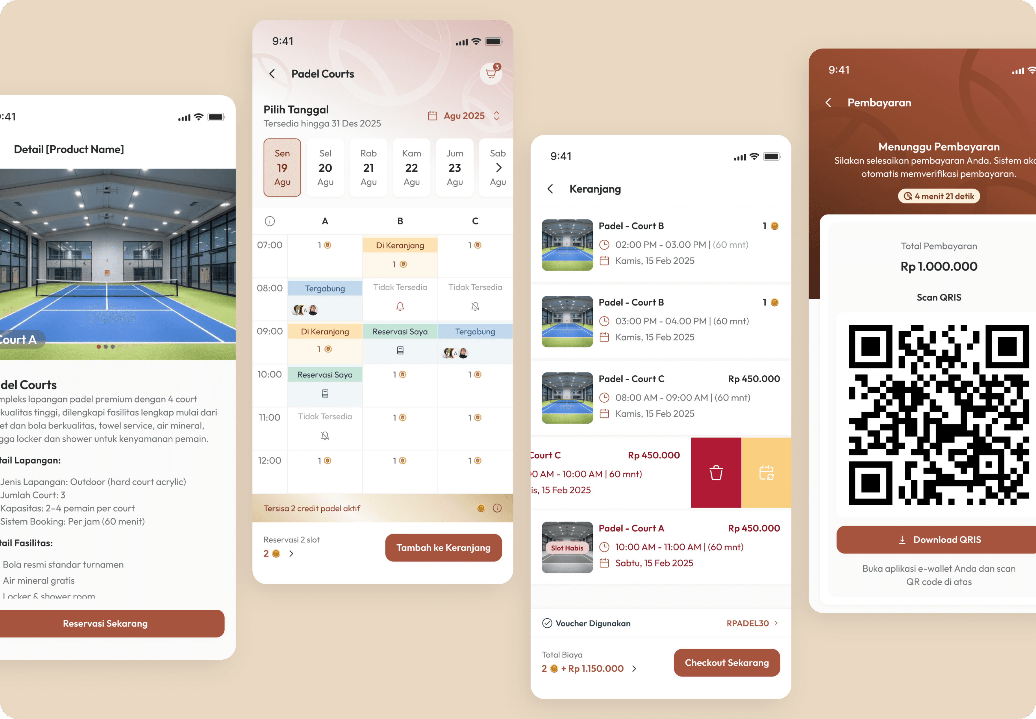 Court booking is time-sensitive and high friction.