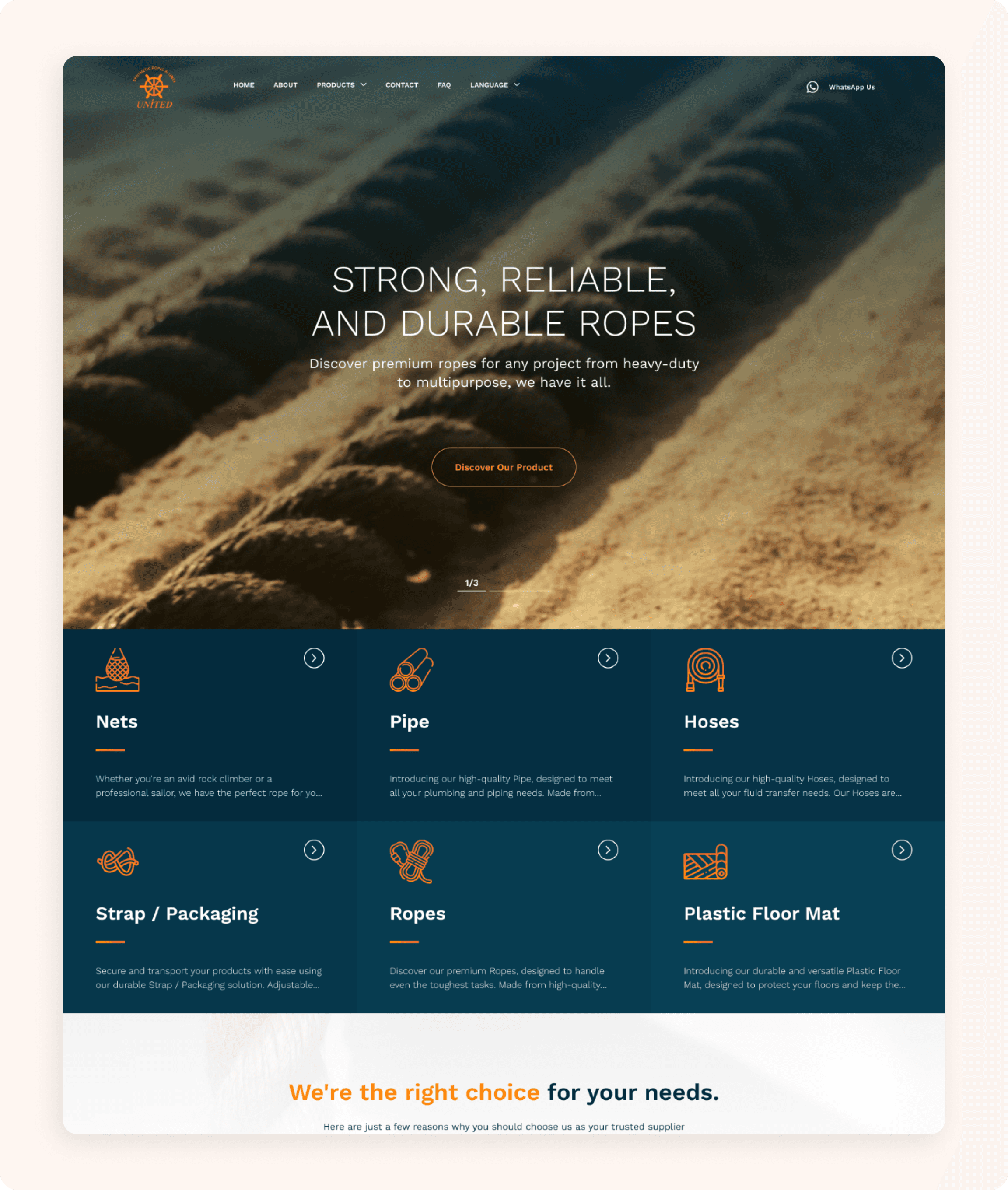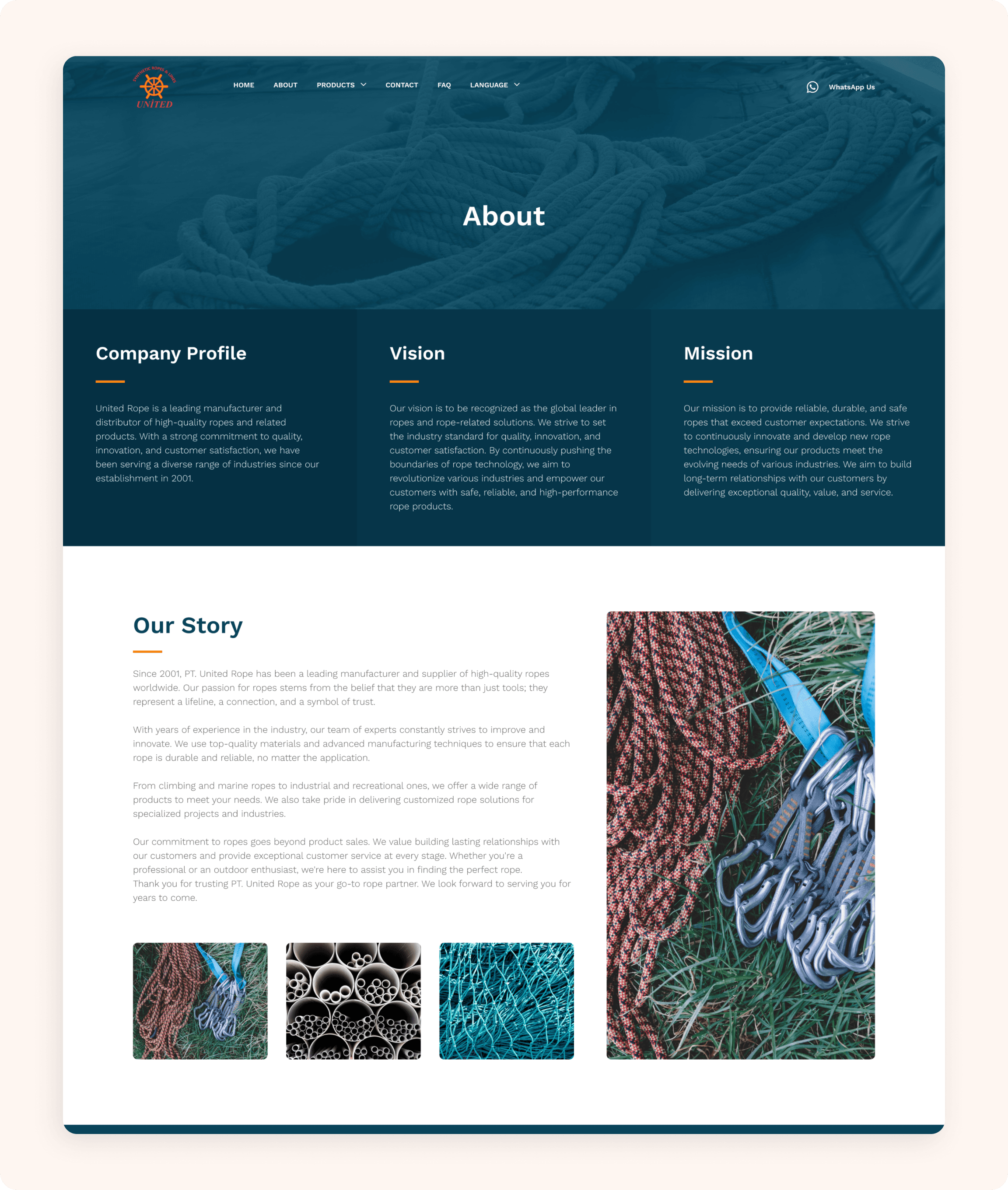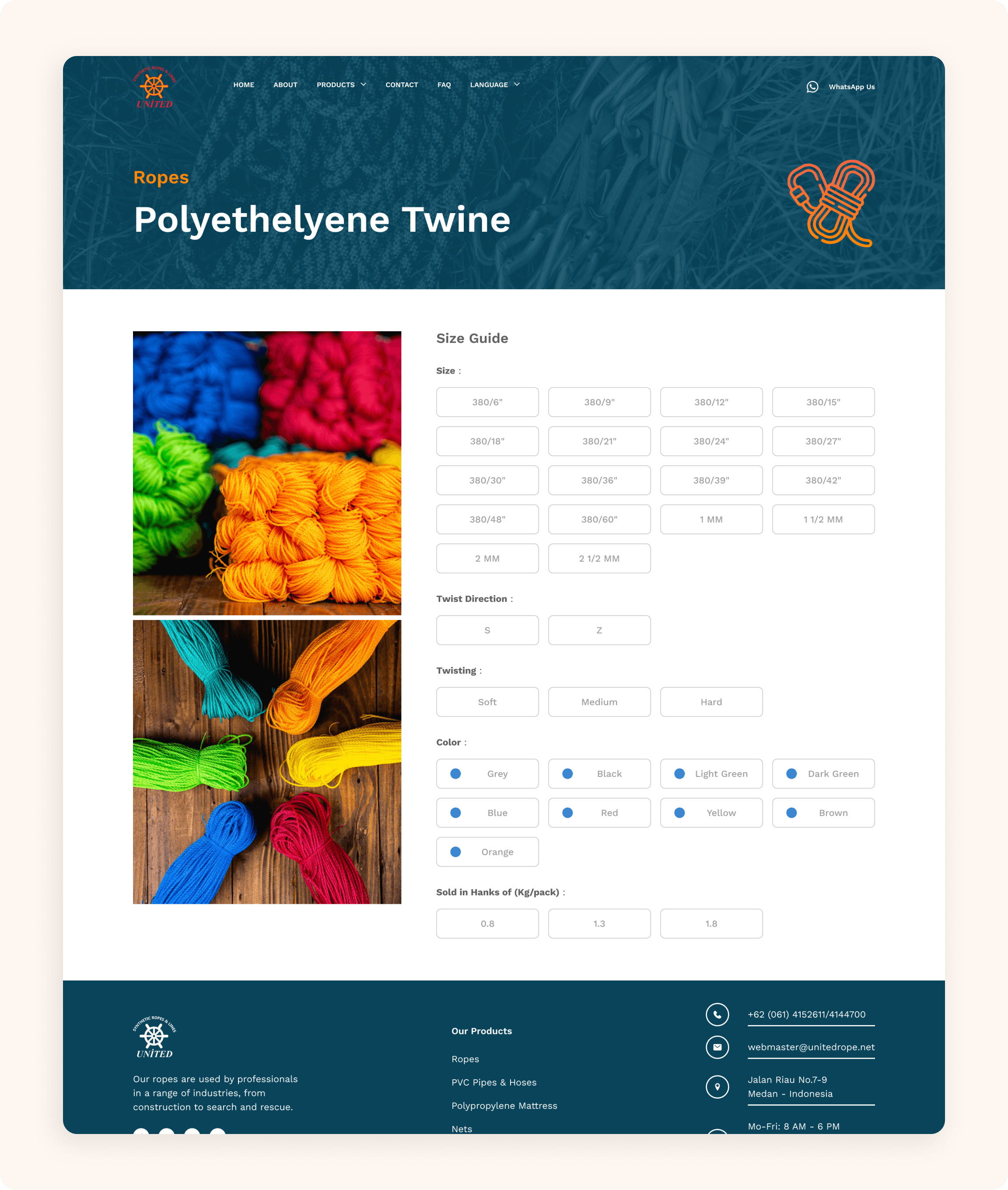 Designed a corporate website for an industrial rope manufacturer with strong emphasis on technical clarity and product categorization.